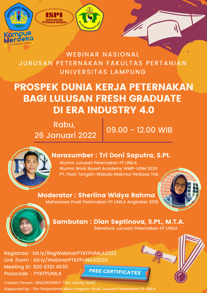 Jurusan Peternakan Fakultas Pertanian Universitas Lampung mengundang Bapak/Ibu/Alumni/Mahasiswa/Akademisi untuk mengikuti webinar nasional berjudul:
